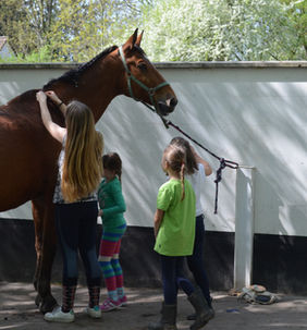 Jede*r Praktikant*in bekommt außerdem eine Reitstunde in der Woche auf unseren Lehrpferden.